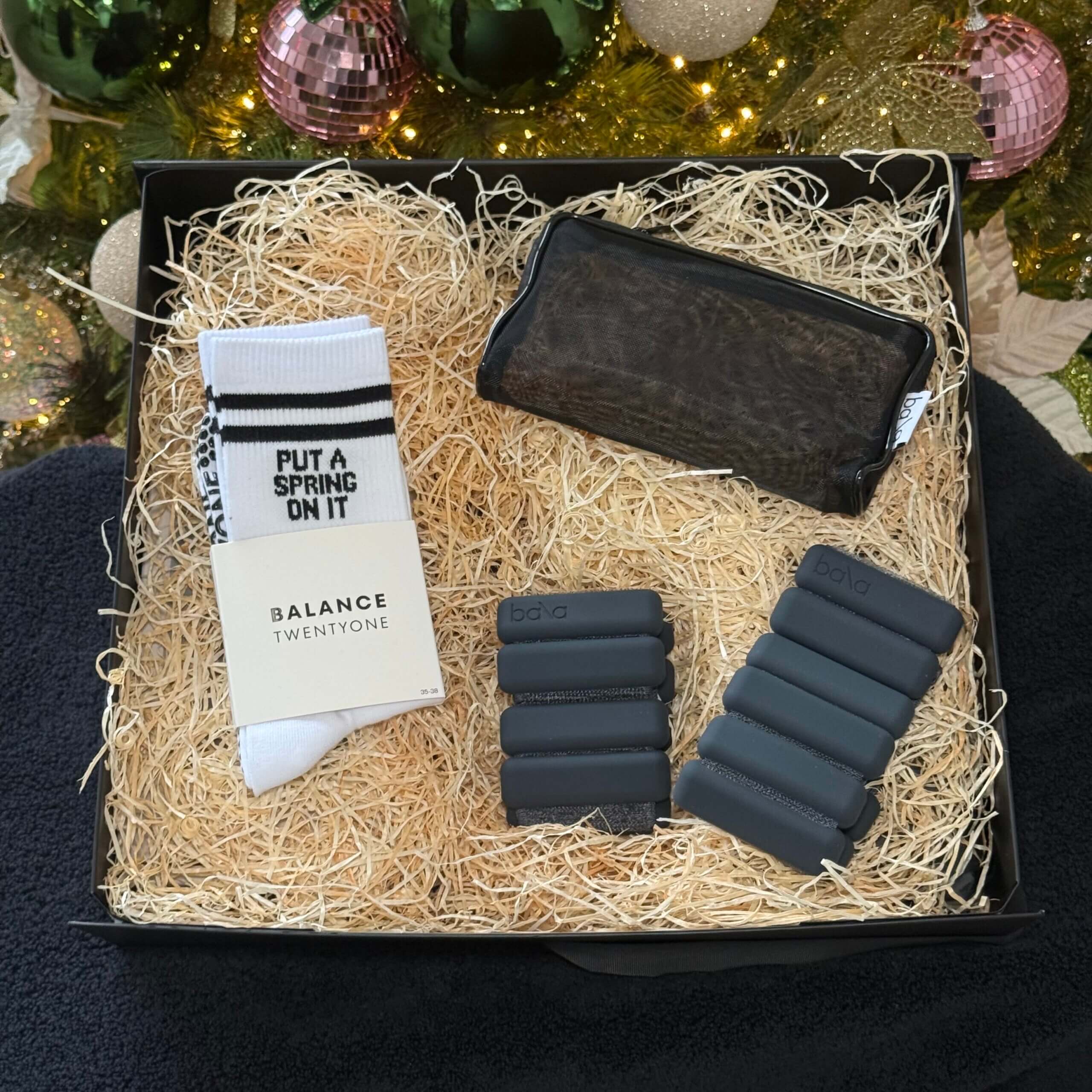 Featuring Bala Weighted Bangles for a chic strength boost and Balance TwentyOne Grip Socks for stability and style, this box is made for the mover who loves form and flair.